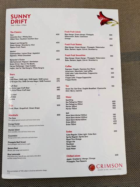 평일이라 3000페소 냈고, 그 중 2500페소는 식음료로 쓸 수 있는 크레딧이라 사실 먹으러 온거나 다름 없는!