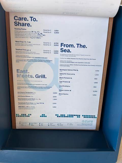 AZURE 레스토랑 메뉴판은 수영장에서 먹을 수 있는 메뉴판과 달라요.
